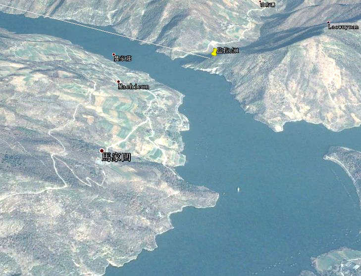 本監控點,是監控點5與黃龍大壩之間,最后一個監控點,也是處于主河道的V字形拐彎處。海拔約338米。